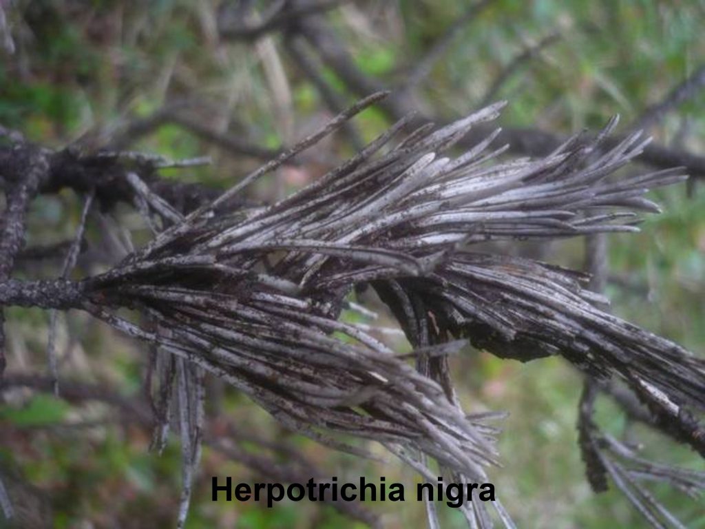 🟡Шютте буре. Збудник хвороби – гриб Herpotrichia nigra (Herpotrichia juniperi). Весною після танення снігу хвою та гілки сосни, ялини, ялівцю та ін. хвойних видів вкриває густий чорно-бурий міцелій, який призводить до їх відмирання. Хвороба найбільш небезпечна для молодих дерев, у старших – відмирають гілки, які зимою вкриті снігом. Уражена хвоя набуває бурого кольору, однак не опадає з гілок, тому, що щільно склеєна міцелієм.