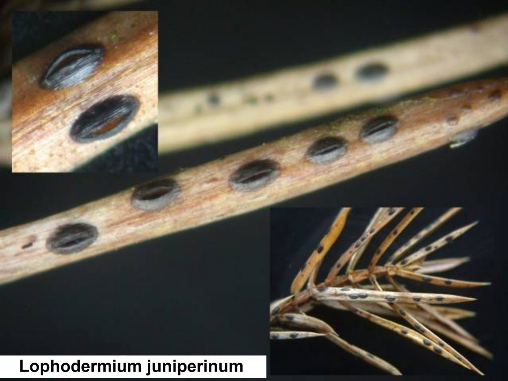 🟡Шютте ялівцю. Збудник хвороби – гриб Lophodermium juniperinum, Характерною першою ознакою є всихання окремих гілочок, яке доволі швидко поширюється на всю рослину. Активність хвороби можна помітити протягом всього року.